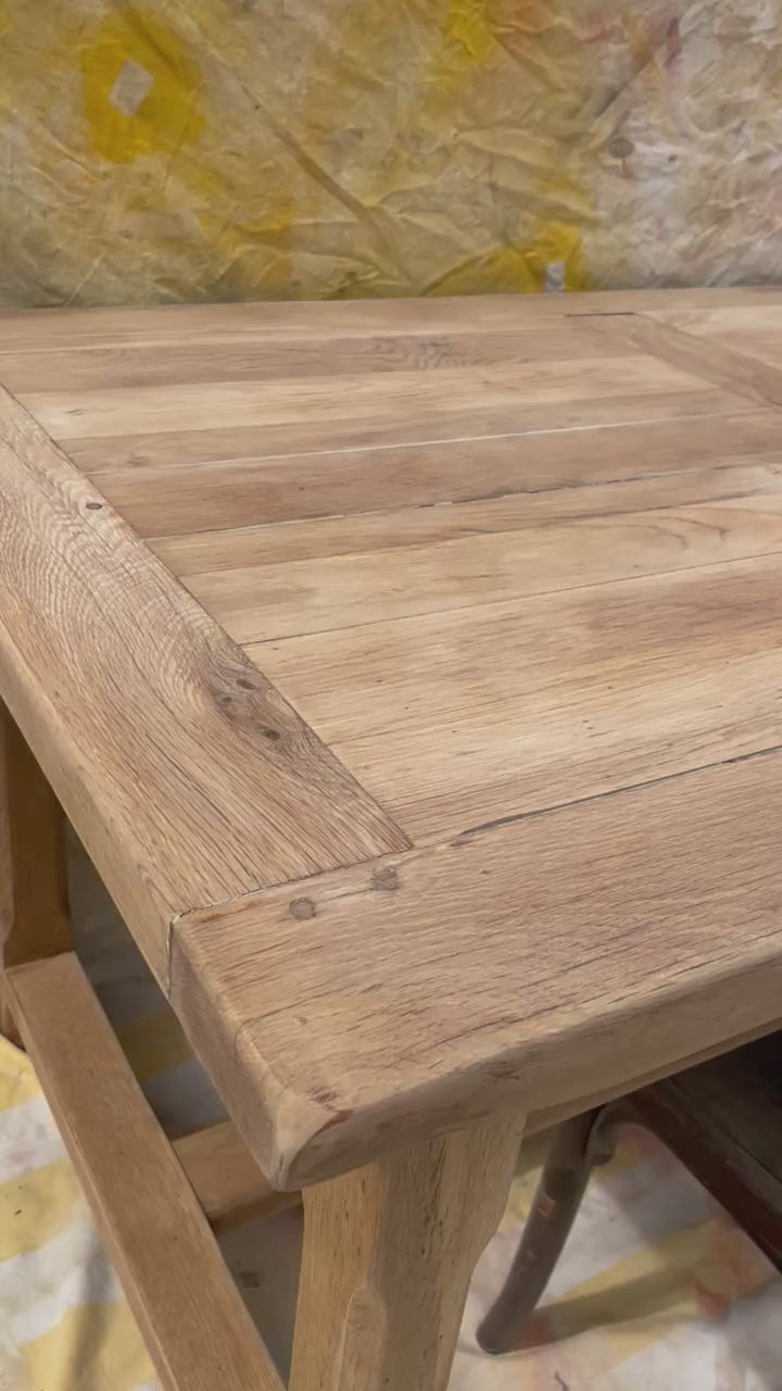 Superbe table de ferme ancienne, entièrement décapée pour retrouver une teinte naturelle aux belles nuances.