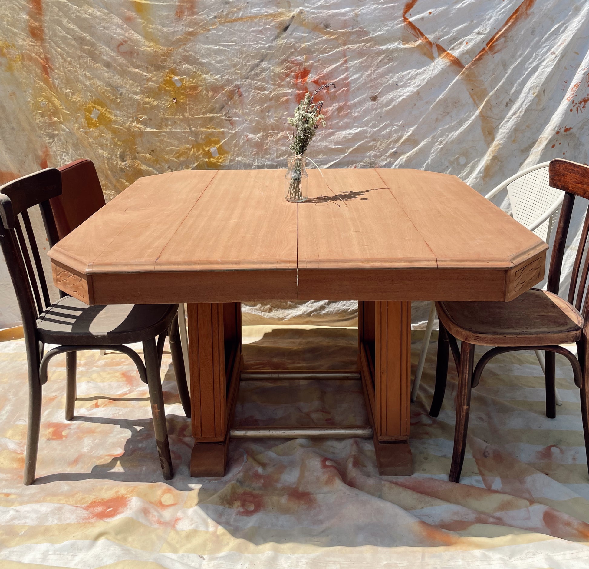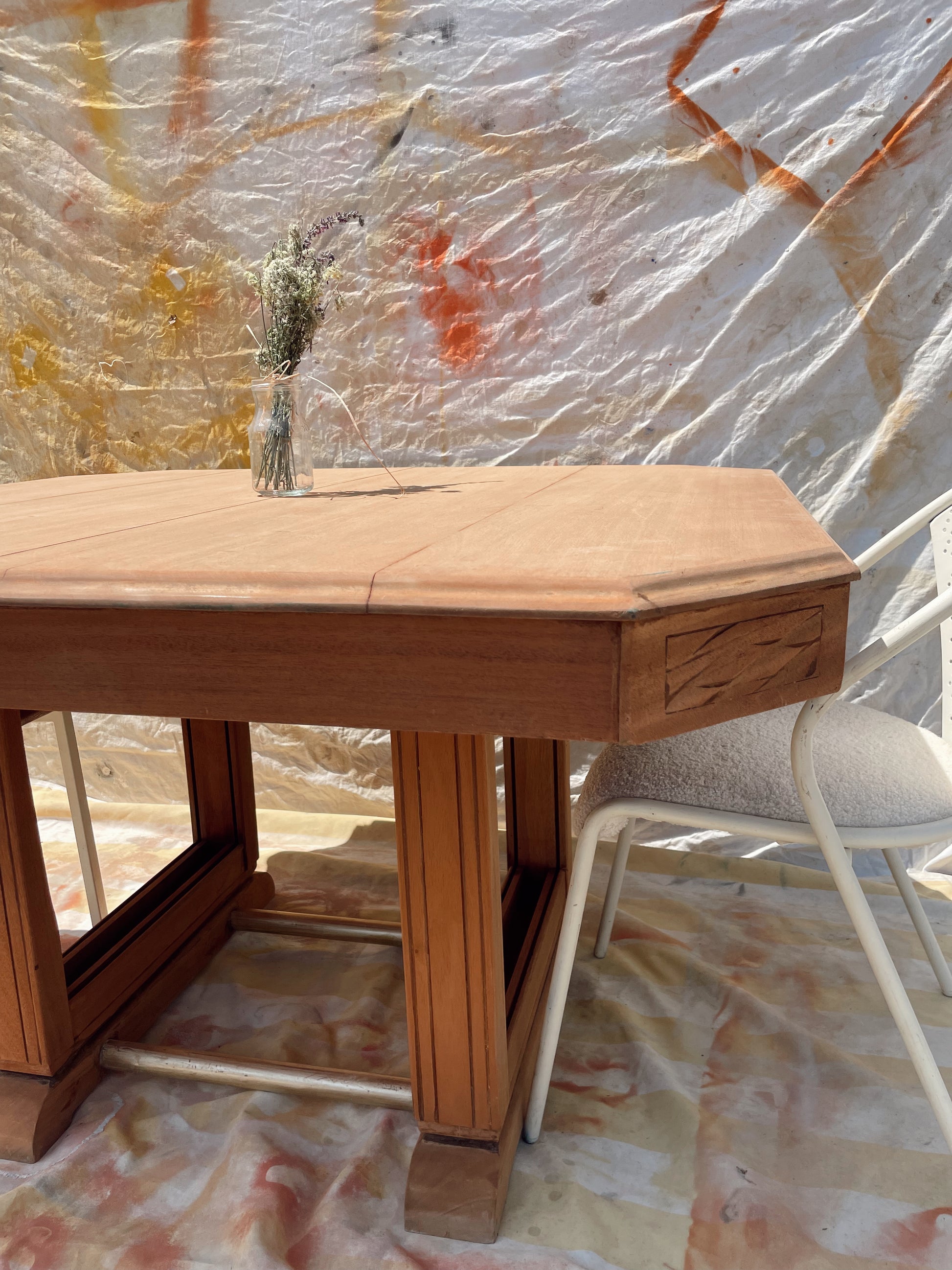 Table bois massif décapé 123 à230cm vintage art déco